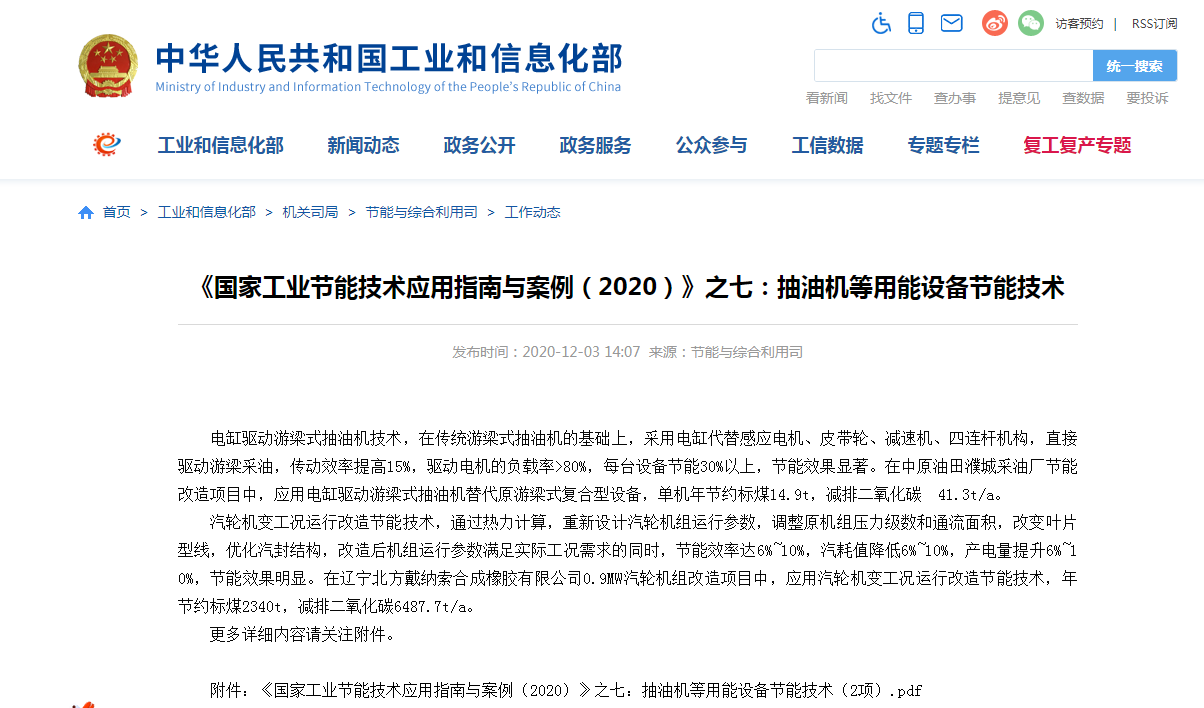 2020年12月3日,國家工業和信息化部發布2020年《國家工業節能技術應用指南與案例(2020)》,其中我公司核心節能技術“汽輪機變工況運行改造節能技術”成功入選。