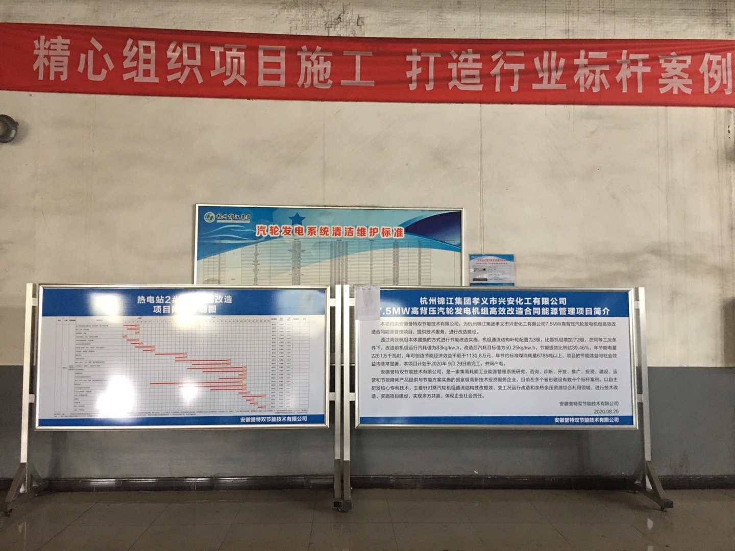 2020年10月19日上午10時許,我公司以合同能源管理效益分享型商務模式,全額投資的世界五百強杭州錦江集團全資子公司——孝義市興安化工有限公司8MW高背壓式汽輪發電機組高效改造項目,機組型號:B8-9.2/6.7//535,項目正式進入工程驗收,對節能提效指標進行精準測試。