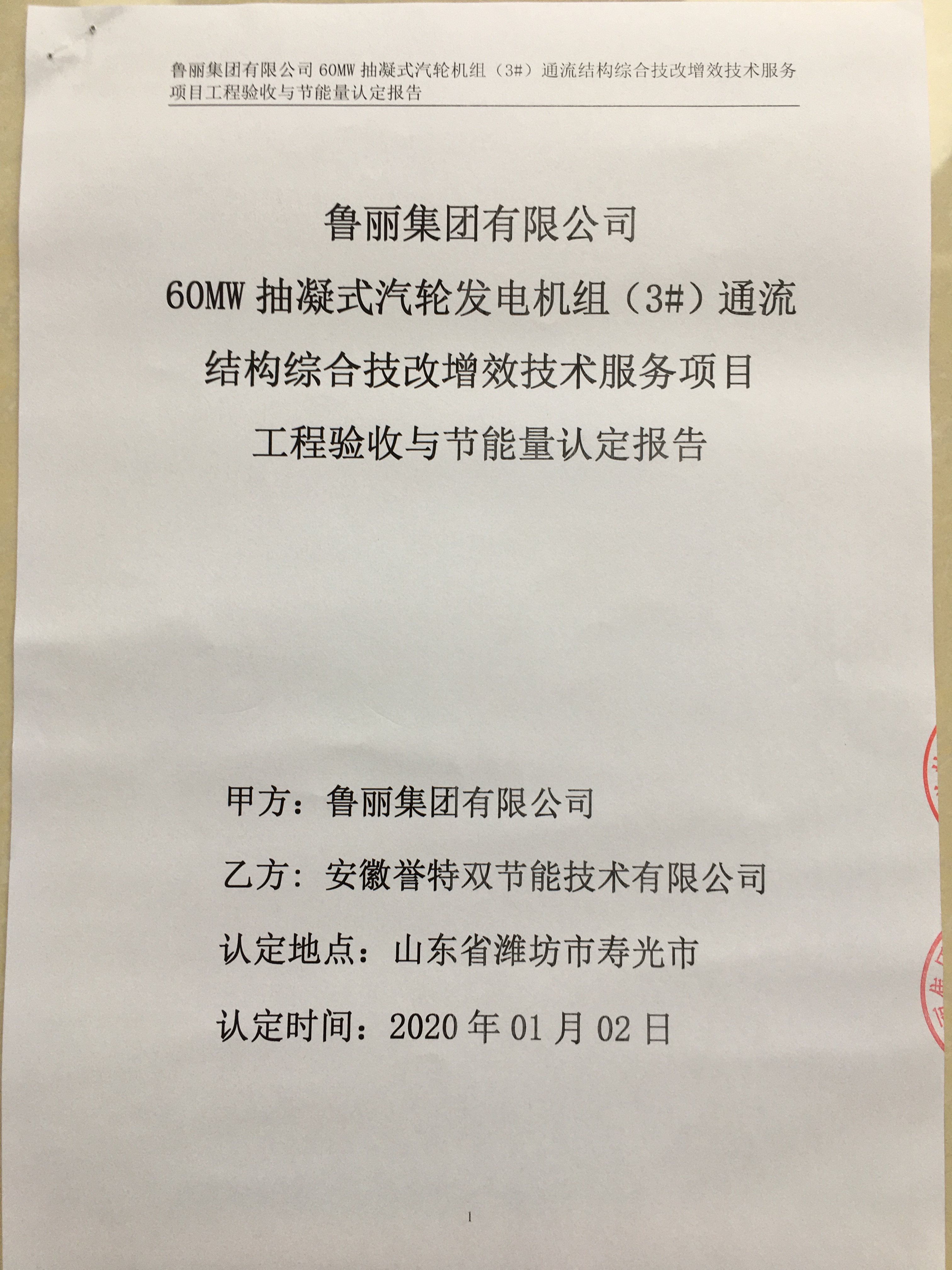 2020年1月2日上午,我公司技術(shù)服務項目——魯麗集團有限公司60MW雙抽凝式汽輪機組通流結(jié)構(gòu)綜合技改提效項目,通過節(jié)能量認定和工程驗收。