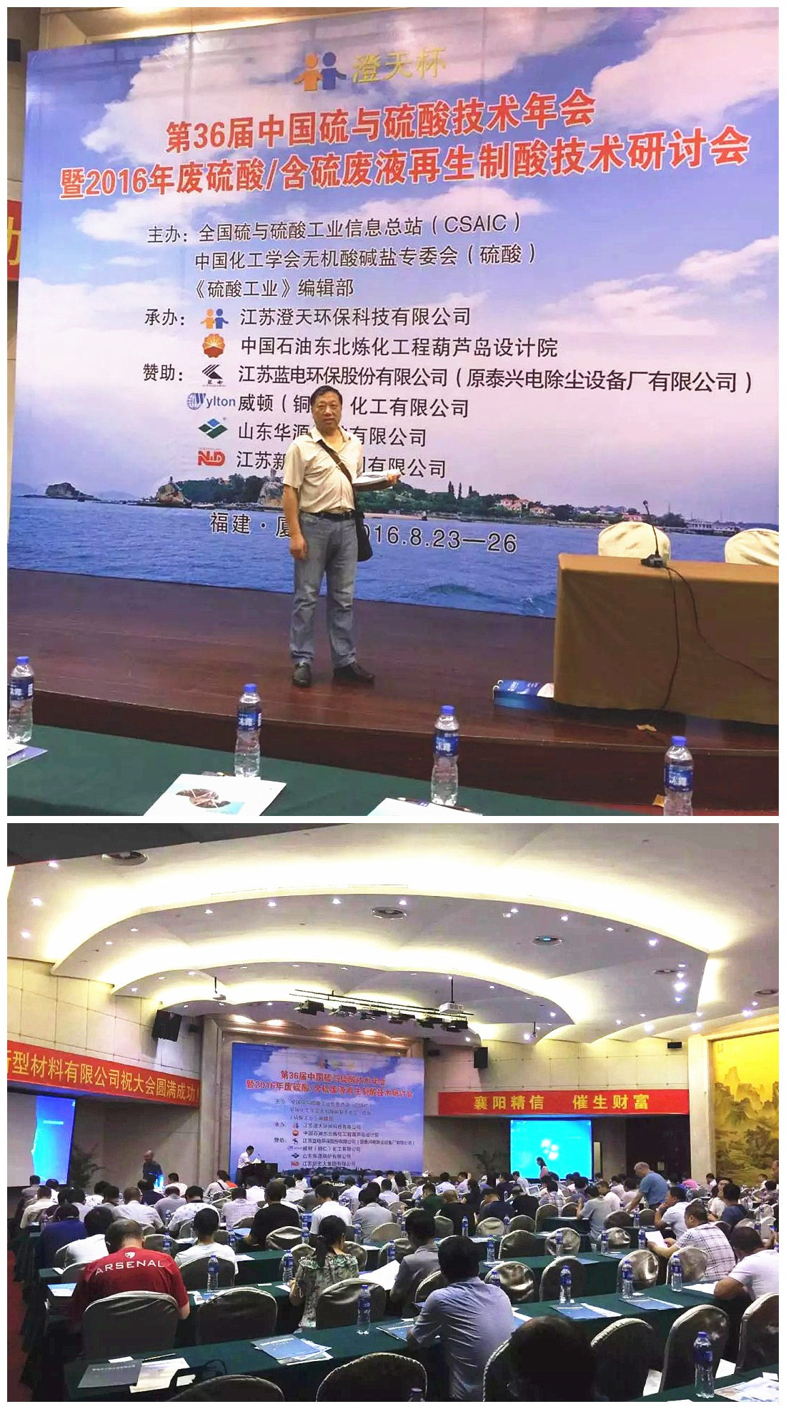 近日,我司受邀參加第三十六屆中國硫與硫酸技術年會暨2016年廢硫酸/含硫廢液再生制酸技術研討會,本會議圍繞政策市場、清潔生產、節能節電、污染物減排、危廢處置、廢酸再生、砷回收等行業熱點難點問題展開研究。