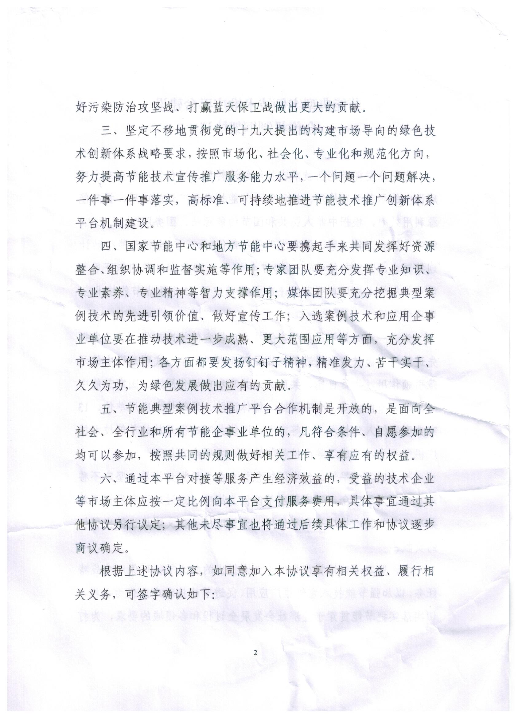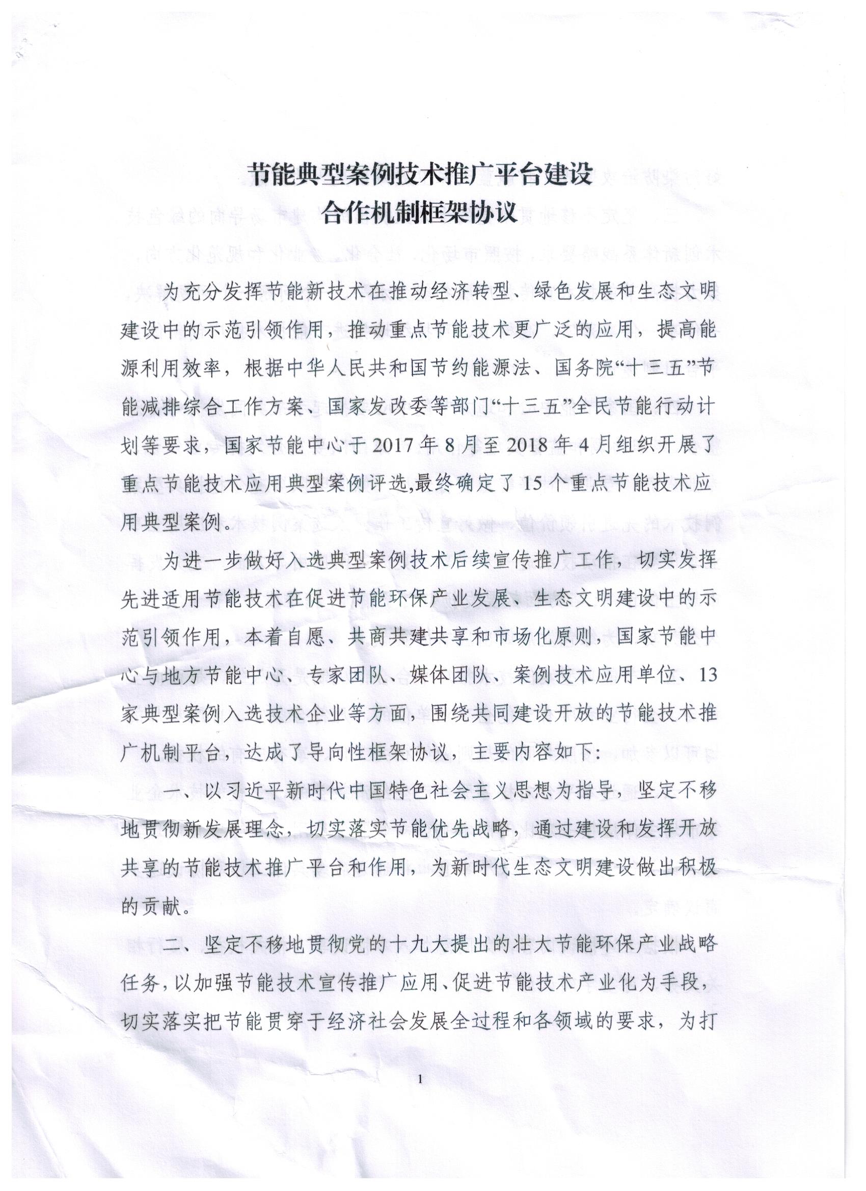 在對接會議現(xiàn)場,我公司與國家節(jié)能中心達(dá)成戰(zhàn)略合作意向,并進(jìn)行了現(xiàn)場簽約。國家節(jié)能中心的節(jié)能技術(shù)推廣合作機制從去年9月建立后,目前已簽約企業(yè)單位已76家,包括了技術(shù)企業(yè)、用能單位、研發(fā)機構(gòu)、宣傳媒體等,致力于打造一個開放、共建、共享的推廣平臺。