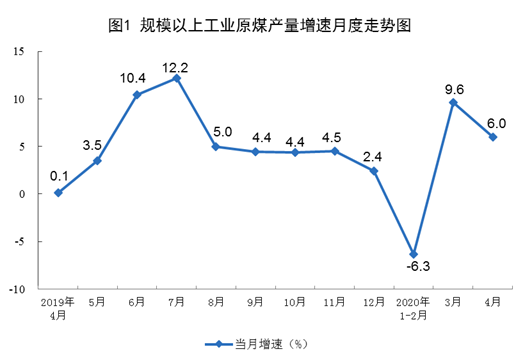 原煤生產(chǎn)增長(zhǎng)較快。4月份,生產(chǎn)原煤3.2億噸,同比增長(zhǎng)6.0%,增速比上月回落3.6個(gè)百分點(diǎn);日均產(chǎn)量1074萬(wàn)噸,環(huán)比減少14萬(wàn)噸。1—4月份,生產(chǎn)原煤11.5億噸,同比增長(zhǎng)1.3%。