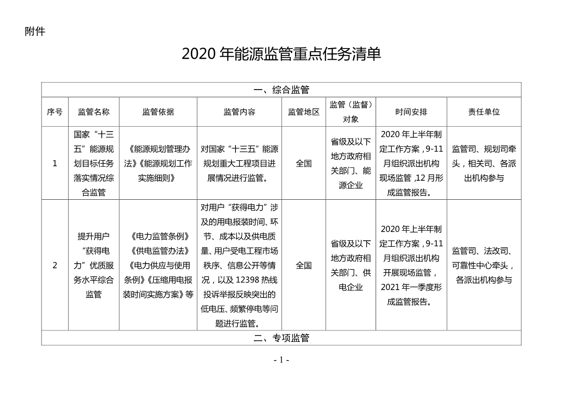 附件:2020年能源監管重點任務清單