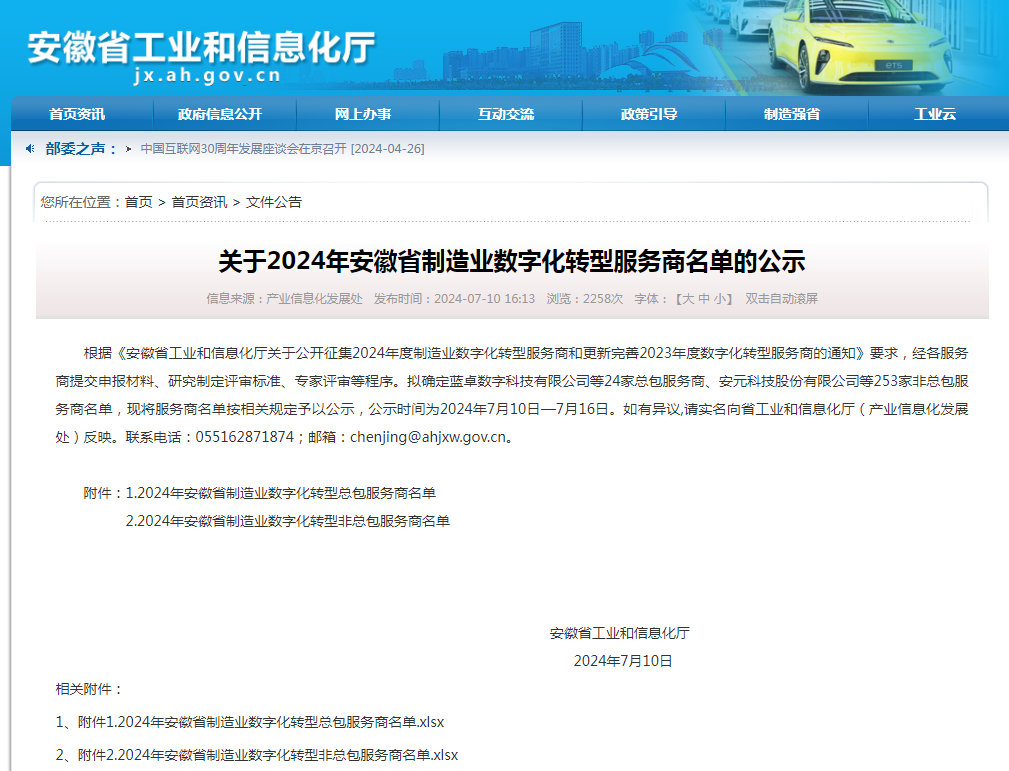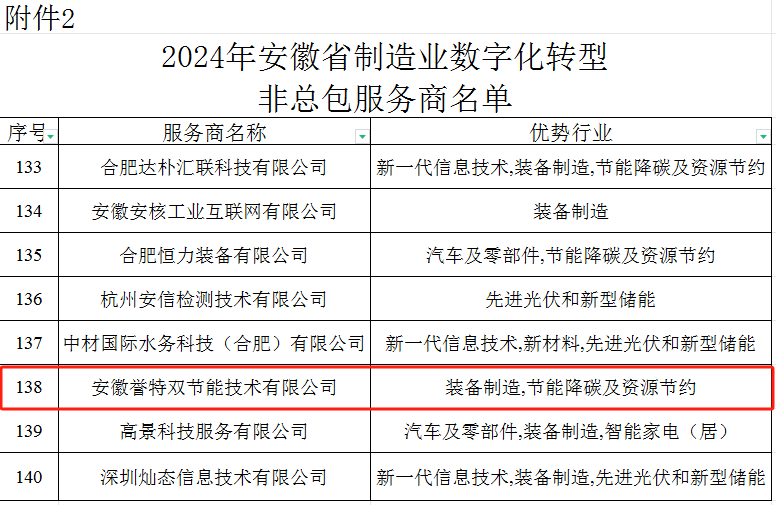 近日,根據《安徽省工業和信息化廳關于公開征集2024年度制造業數字化轉型服務商和更新完善2023年度數字化轉型服務商的通知》要求,經各服務商提交申報材料、研究制定評審標準、專家評審等程序,由安徽省工業和信息化廳發布2024年安徽省制造業數字化轉型服務商名單,我公司名列其中,在此表示熱烈祝賀!
