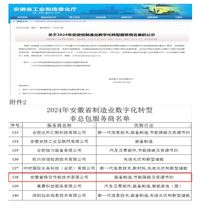 入選2024年安徽省 制造業數字化轉型服務商名單
