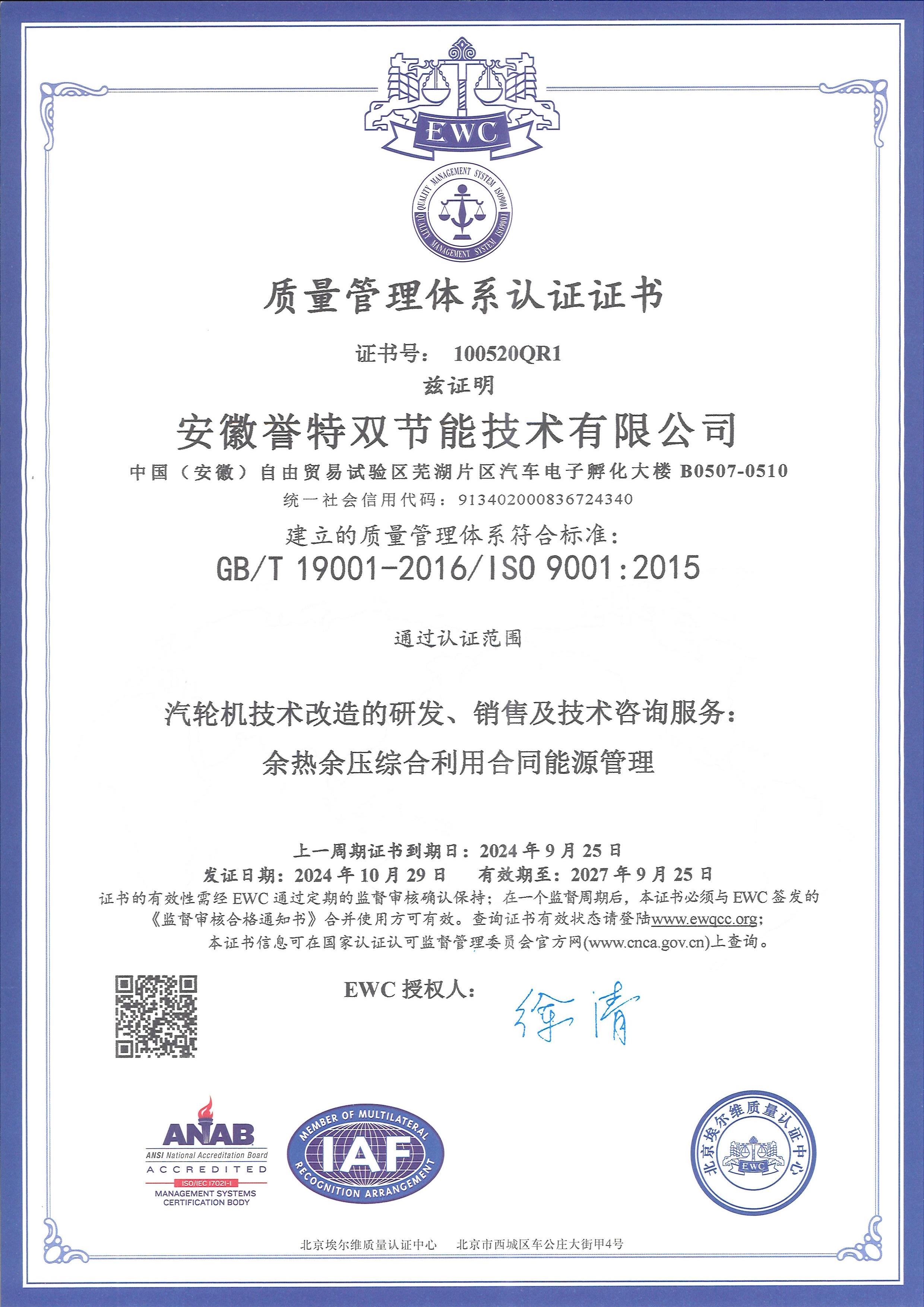 通過三體系認(rèn)證,公司建立了系統(tǒng)、開放、高效的管理體系,使企業(yè)的管理更加規(guī)范化、標(biāo)準(zhǔn)化,進(jìn)而提高企業(yè)的運(yùn)營效率和市場競爭力,在展示企業(yè)良好形象的同時,推動企業(yè)持續(xù)改進(jìn)和自我完善,由此提高公司的信譽(yù)和客戶信任度,為更多用能單位提供高質(zhì)量、高水平服務(wù)。