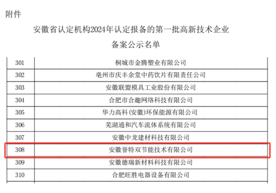 近期,全國高新技術企業認定管理工作領導小組辦公室公布了安徽省2024年認定報備的第一批高新技術企業,我公司名列其中,在此表示祝賀!同時這也是公司連續第三次被認定為國家高新技術企業。
