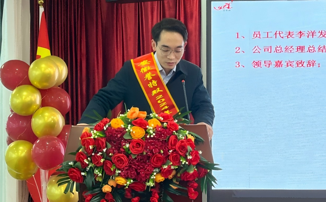 公司特邀嘉賓代表分別作了指導講話,一致對安徽譽特雙所取得的成就表示贊同和認可,也希望譽特雙在今后工作中齊心協力、努力拼搏、攜手共進,創造新的業績增長與發展壯大!同時,2024年度明日之星獲得者李洋作為員工代表進行了發言。